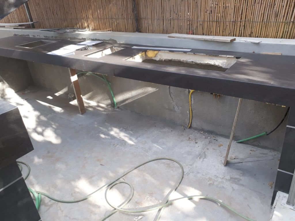 תחילת ייצור של מטבח חוץ צמוד קיר באורך 5.1 מטר + מטבח משולב בר ישיבה באורך 4 מטר.