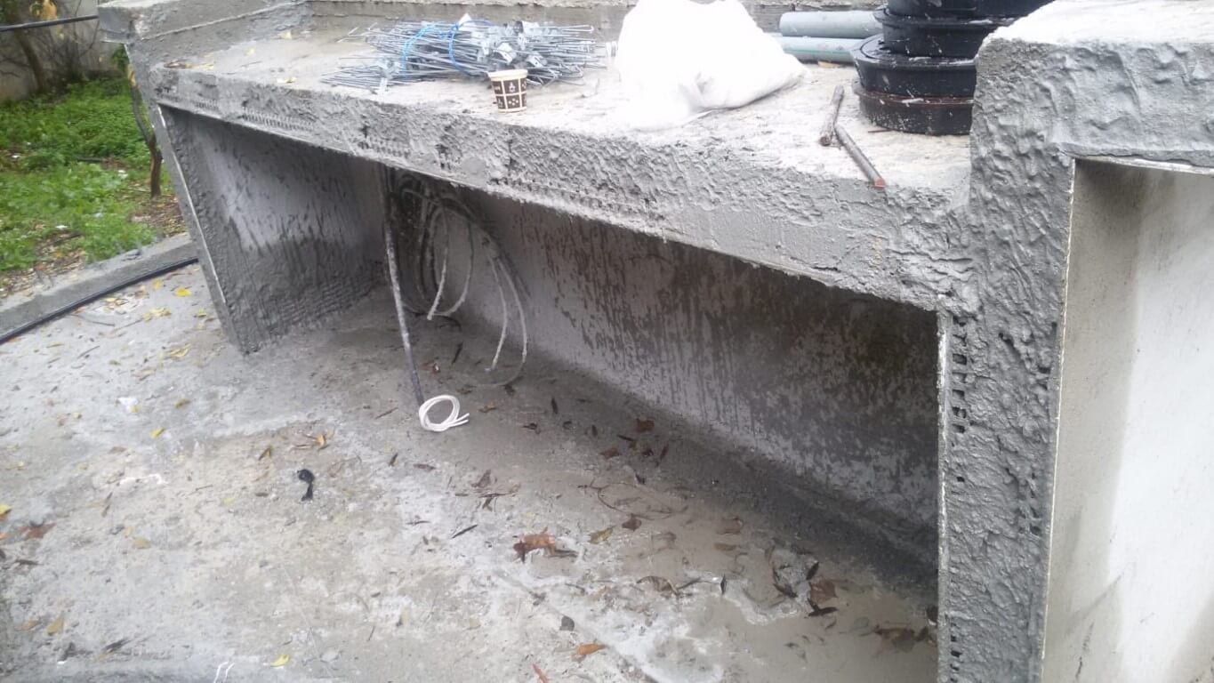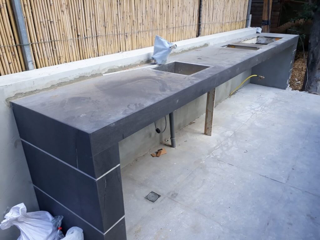 מטבח חוץ מיוצר מבלוקים וחגורות בטון.